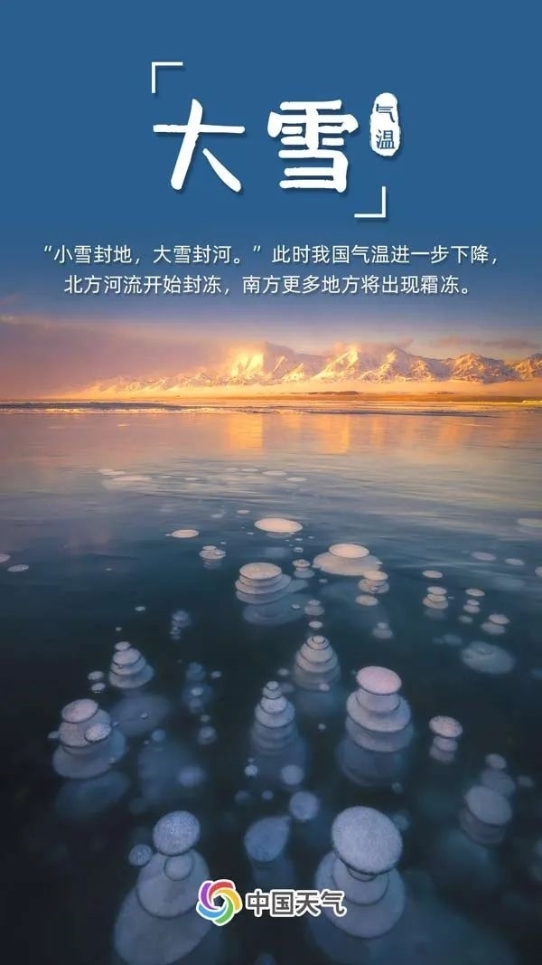 北方地區(qū)在大雪時節(jié)往往已進(jìn)入隆冬時節(jié),不少地方已經(jīng)是一派銀裝素裹的景象,河水也開始封凍。南方也有更多地方最低氣溫跌破冰點(diǎn),開始出現(xiàn)霜凍。