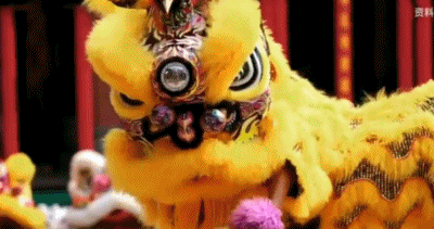 舞動的獅子騰起、跳躍、搖頭擺尾