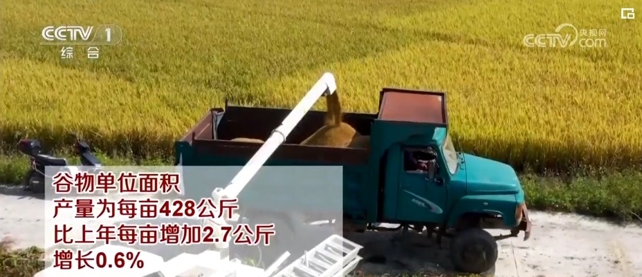 2023年,全國糧食單位面積產量為每畝390公斤,比上年每畝增加2.9公斤,增長0.8%。其中,谷物單位面積產量為每畝428公斤,比上年每畝增加2.7公斤,增長0.6%。