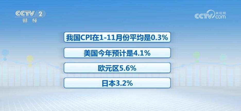 寧吉喆表示,消費物價上漲率,也就是通脹率,我國CPI在1—11月份平均是0.3%,美國今年預(yù)計是4.1%,歐元區(qū)5.6%,日本3.2%。