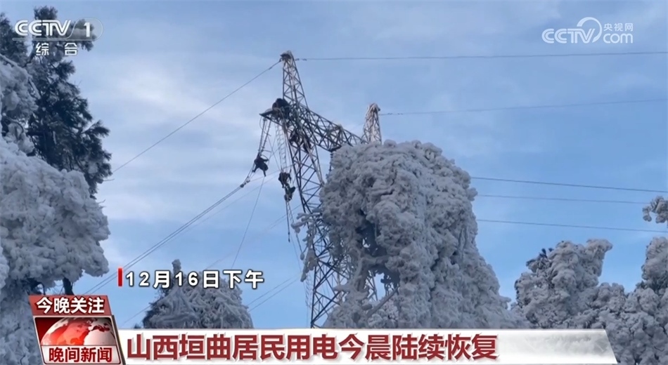 寒冬里,有人選擇向寒風(fēng)逆行,用自己的堅守給千家萬戶送去溫暖。13日傍晚,受降雪降溫天氣影響,山西省運(yùn)城市垣曲縣的4條輸電線路發(fā)生故障,導(dǎo)致全縣停電。經(jīng)過70多個小時搶修,截至12月17日7點(diǎn),受雨雪冰凍災(zāi)害影響的山西12座變電站已全部恢復(fù)供電,垣曲當(dāng)?shù)鼐用裼秒娨仓鸩交謴?fù)。