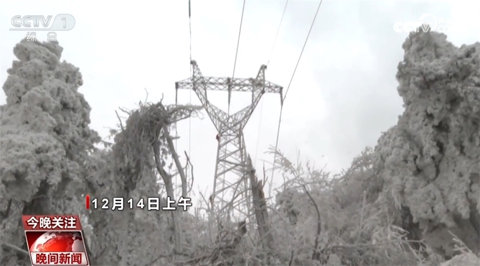 總臺記者 崔肖冉:這里的海拔超過1200米,現(xiàn)在室外氣溫降至零下20℃,感覺進(jìn)入了一個冰窖。我在室外大概走上15分鐘左右,就感覺整個關(guān)節(jié)凍得發(fā)疼,而此時此刻在距離地面大概20多米的高空,維修人員正在輸電線路上進(jìn)行緊急搶修,而且今天晚上風(fēng)很大,可想而知搶修難度有多大。