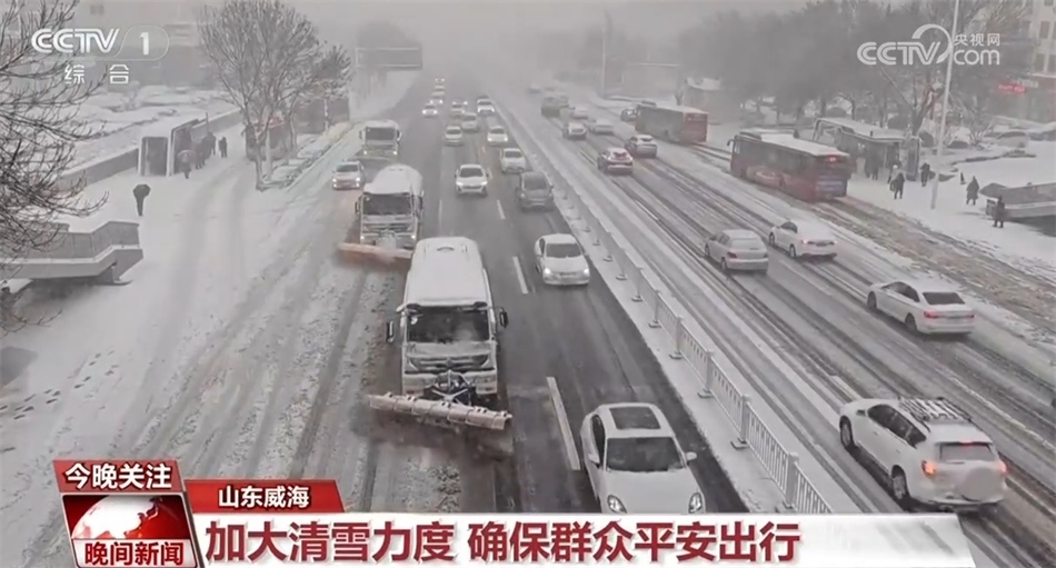 從16日開始,山東威海迎來強(qiáng)降雪天氣,晚上七點(diǎn)多,威海收費(fèi)站負(fù)責(zé)高速公路養(yǎng)護(hù)的張輝,正帶著工友們用鏟車和裝載車緊張地進(jìn)行道路積雪的清除工作。張輝告訴記者,所有養(yǎng)護(hù)人員凌晨三點(diǎn)就起床開始清雪。梯形車隊出發(fā)后,張輝又組織人員對拋錨的車輛進(jìn)行救援,為滯留的貨車司機(jī)發(fā)放食品。