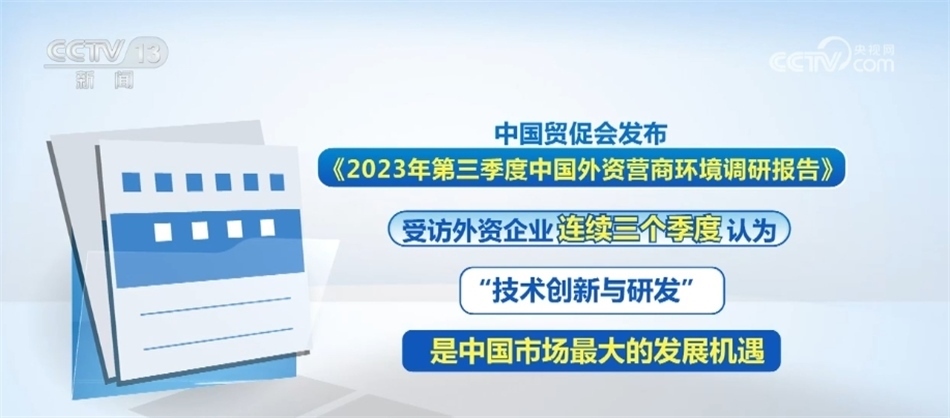 布局未來,如今,越來越多外資企業(yè)正在從“在中國制造”走向“在中國創(chuàng)造”。中國德國商會的調查報告就顯示,53%的德國企業(yè)計劃在未來兩年內增加在中國本土化研發(fā)的職能;而中國貿促會發(fā)布的《2023年第三季度中國外資營商環(huán)境調研報告》則顯示,受訪外資企業(yè)連續(xù)三季度認為“技術創(chuàng)新與研發(fā)”是中國市場最大的發(fā)展機遇。