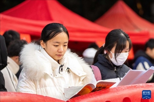 12月23日,在湖南省長沙市,考生在湖南農(nóng)業(yè)大學(xué)考點(diǎn)排隊時抓緊復(fù)習(xí)。