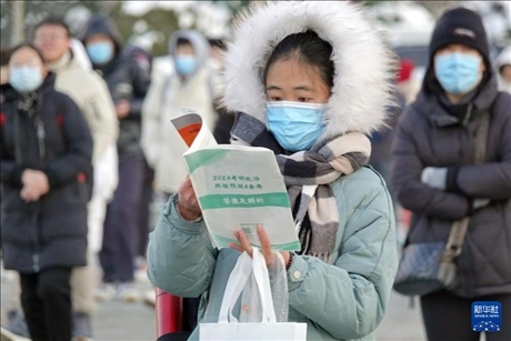 12月23日,在黑龍江省哈爾濱市,考生在哈爾濱理工大學(xué)考點(diǎn)排隊進(jìn)入考場。