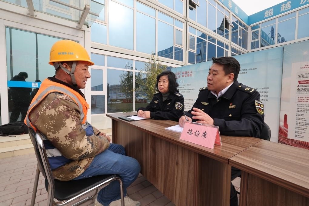 圖為北京市根治拖欠農(nóng)民工工資工作協(xié)調(diào)小組在新國(guó)展二期建設(shè)工地進(jìn)行現(xiàn)場(chǎng)接訪(fǎng)。(北京市人社局供圖)