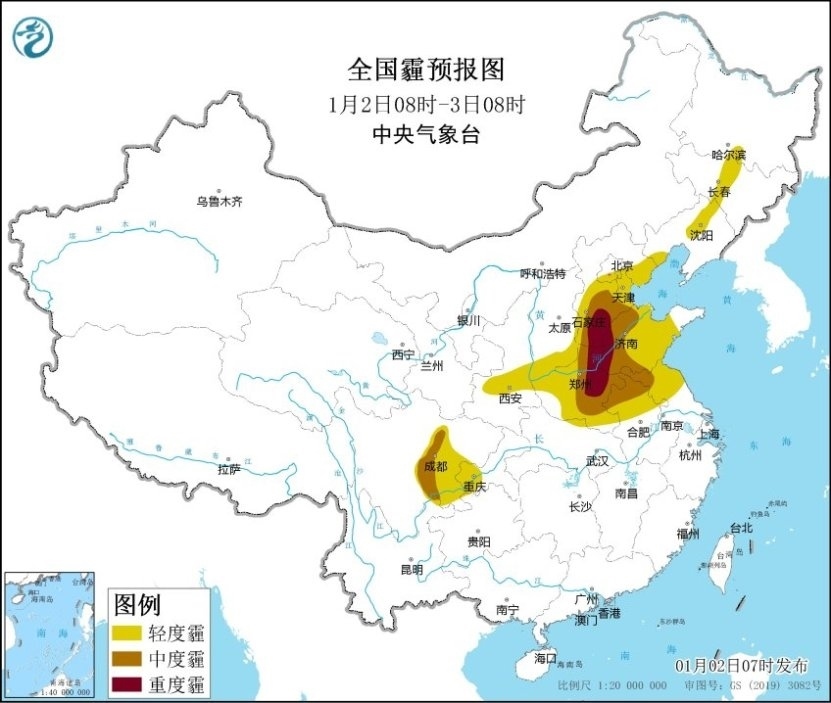 央視網(wǎng)消息:中央氣象臺發(fā)布每日天氣提示,今晨,北京南部、天津西部、河北南部、遼寧中部、山東西北部、江蘇南部、安徽南部、福建西部及四川盆地、新疆沿天山一帶等地出現(xiàn)大霧或霾,局地能見度不足200米。
