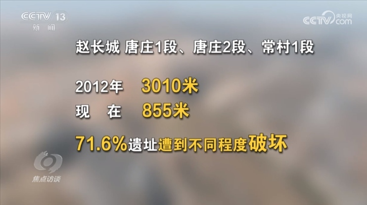 數(shù)據(jù)顯示:2012年,河南省認(rèn)定趙長(zhǎng)城唐莊1段、唐莊2段、常村1段,三段長(zhǎng)城實(shí)際共存在3010米,而現(xiàn)在,遺址僅存在855米,71.6%長(zhǎng)度的遺址已遭到不同程度破壞,令人無(wú)比痛心。