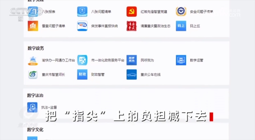工作重心向基層服務(wù)轉(zhuǎn)變,才能切實(shí)看到為基層減負(fù)的實(shí)效。2021年,重慶市一體化、智能化、數(shù)字化政務(wù)工作平臺“渝快政”正式發(fā)布。“渝快政”在全市范圍內(nèi)實(shí)現(xiàn)了上下層級、橫向跨部門之間的協(xié)同,一個(gè)“渝快政”App就可以支持過去40多項(xiàng)高頻次的政務(wù)辦公應(yīng)用,過去各部門App的相應(yīng)功能、各種工作群都整合在了“渝快政”一個(gè)App里面。一表通、“141”基層智治平臺也已經(jīng)接入了“渝快政”,正在向全市推廣?,F(xiàn)在,文勇手機(jī)里的53個(gè)工作群已經(jīng)解散,郝歡手機(jī)里十幾個(gè)部門App也已經(jīng)被整合到“渝快政”。?