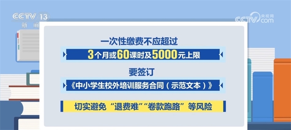 警惕防范資金安全風(fēng)險(xiǎn)。參加非學(xué)科類培訓(xùn)的廣大學(xué)生及家長(zhǎng)要通過(guò)全國(guó)統(tǒng)一的“校外培訓(xùn)家長(zhǎng)端”App選課、繳費(fèi)、退費(fèi)及投訴。一次性繳費(fèi)不應(yīng)超過(guò)3個(gè)月或60課時(shí)及5000元上限,要簽訂《中小學(xué)生校外培訓(xùn)服務(wù)合同(示范文本)》,切實(shí)避免“退費(fèi)難”“卷款跑路”等風(fēng)險(xiǎn)。