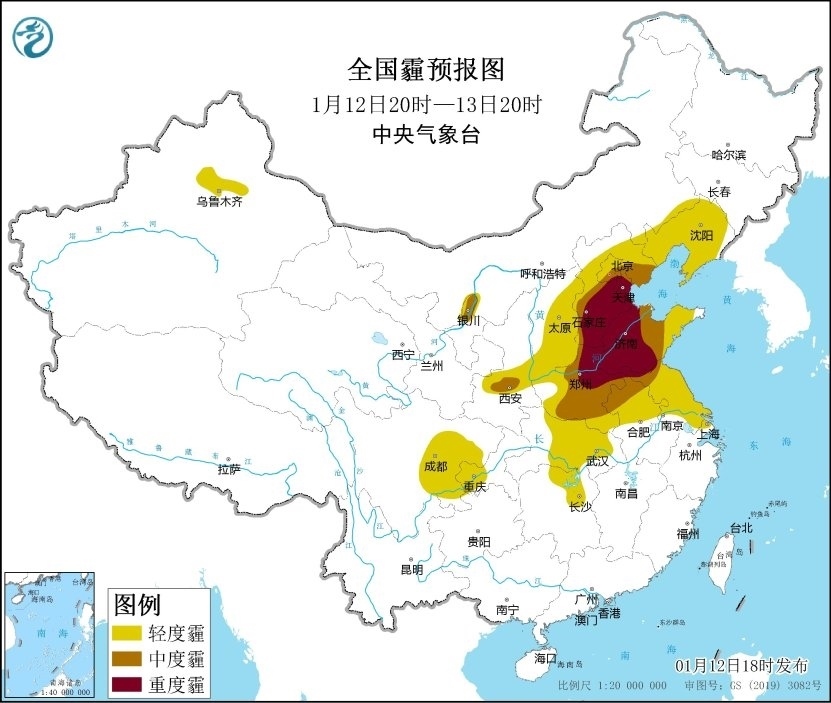 12日夜間至13日,華北中南部、黃淮、江淮、江漢、四川盆地等地大氣擴散條件較差,有輕至中度霾,其中天津、河北南部、山東西部、河南中北部等地有重度霾。14日白天起,受冷空氣影響,上述地區(qū)霾天氣自北向南逐漸減弱消散。