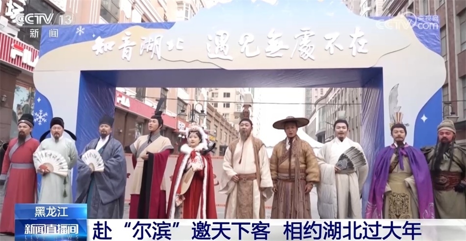 這些天,一群來自湖北的特殊游客抵達(dá)黑龍江哈爾濱,開啟他們的冰雪之旅。他們是湖北省文化和旅游廳組織扮演的“歷史名人天團(tuán)”,既有屈原、伯牙子期等,也有李白、蘇東坡等曾在湖北留下著名詩篇的文人。他們?cè)谥醒氪蠼志凼?,“拼”詩詞展音律,傳遞傳統(tǒng)文化之美。在暢享北國風(fēng)光的同時(shí),也為游客們送上一場超級(jí)文旅秀和文旅大禮包,邀請(qǐng)全國游客“去湖北過大年”。