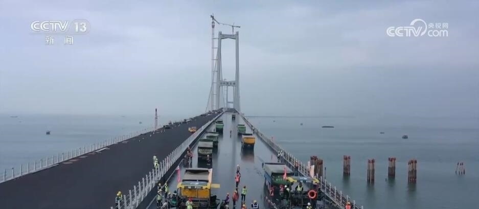 “國家卓越工程師”稱號獲得者 深中通道總工程師 宋神友:深中通道的整個鋼橋面有38萬平方,也是世界最大規(guī)模采用雙層熱拌環(huán)氧瀝青的。對于像深中通道這樣的高溫、高濕和超大交通量的這樣一個交通環(huán)境來講,它是個世界性的難題。