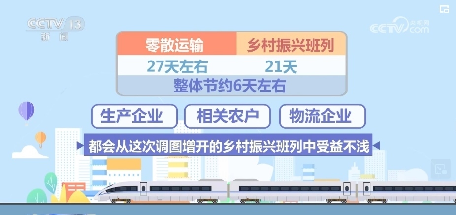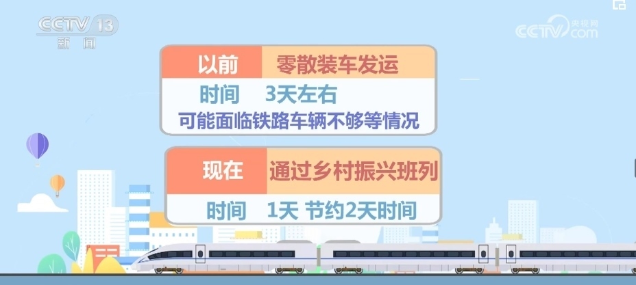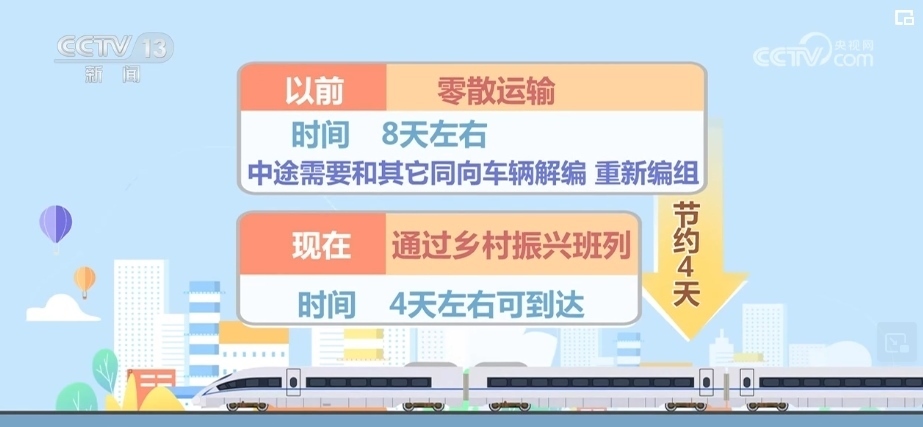路上耗時(shí),以前零散運(yùn)輸需要8天左右,中途需要和其他同向車輛解編、重新編組,現(xiàn)在通過(guò)鄉(xiāng)村振興班列4天左右可以到達(dá),這就節(jié)約了4天時(shí)間。