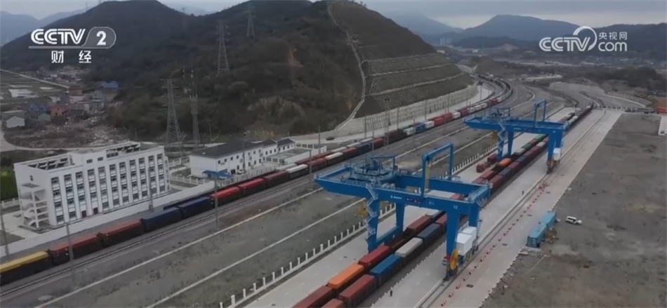 總臺央視記者 馬佳倫:這里是位于寧波舟山港北侖第一集裝箱碼頭的作業(yè)區(qū)。此刻一輛來自金華,載五十節(jié)車廂,共計100標箱量的列車正在進站。去年底甬金鐵路開通運營以來,寧波舟山港新增一條重要疏運通道,世界第一大港寧波舟山港與世界小商品之都義烏(間)運行效率大大提升。