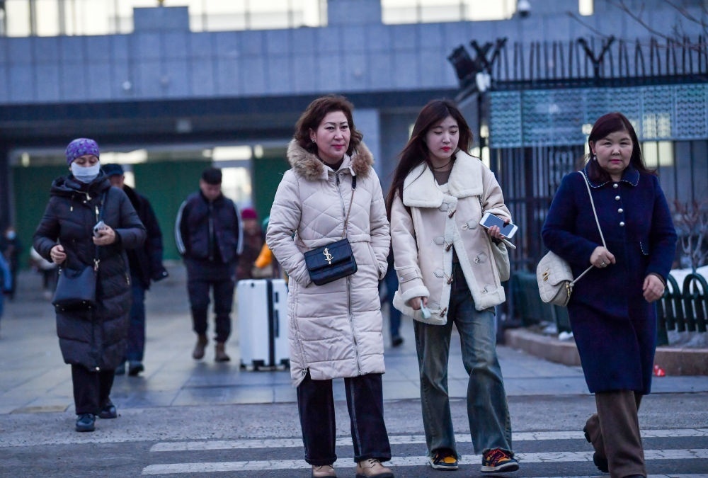 2024年1月15日,在新疆自貿(mào)試驗(yàn)區(qū)霍爾果斯片區(qū)的中哈霍爾果斯國(guó)際邊境合作中心,商人通過(guò)快捷通道進(jìn)入園區(qū)。新華社記者 趙戈 攝