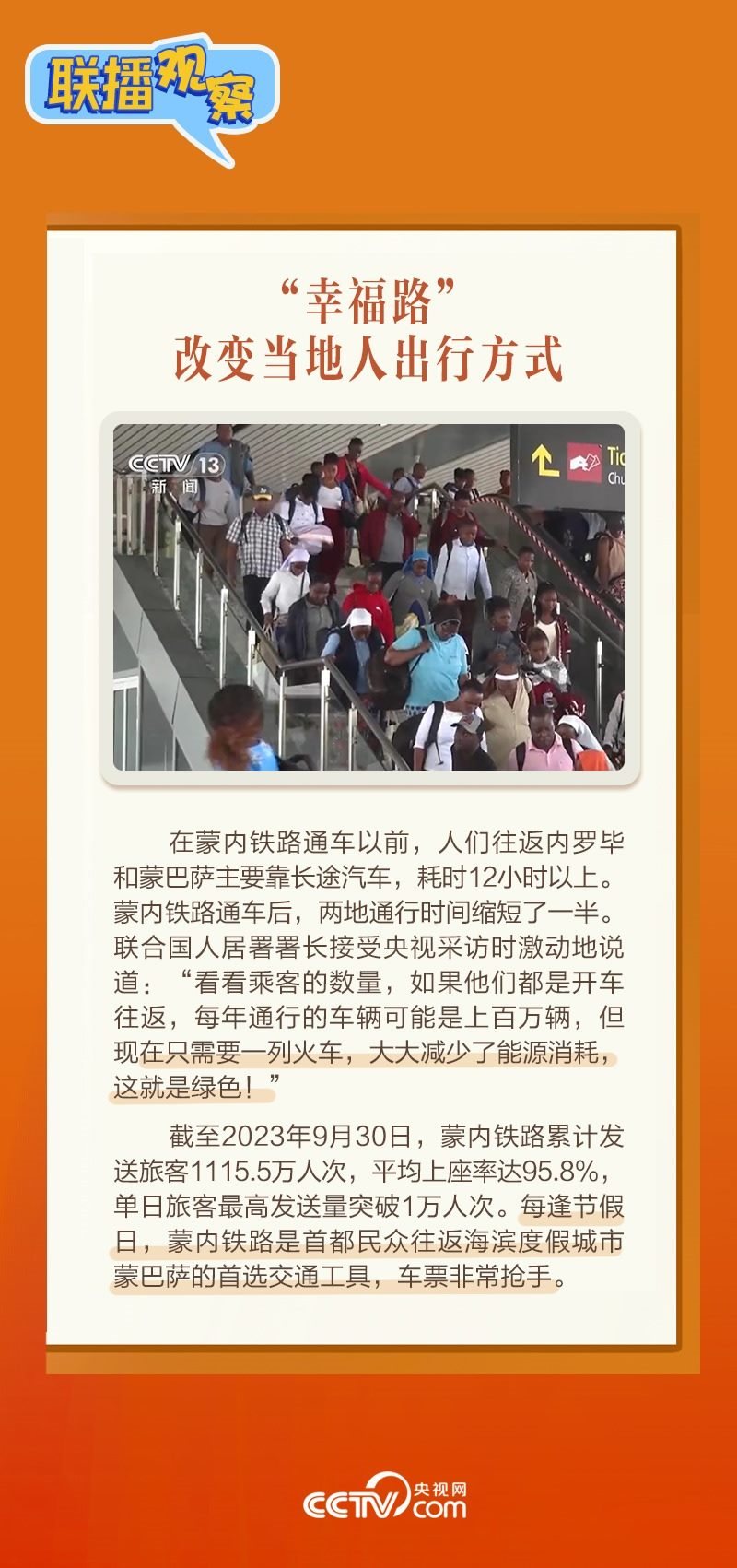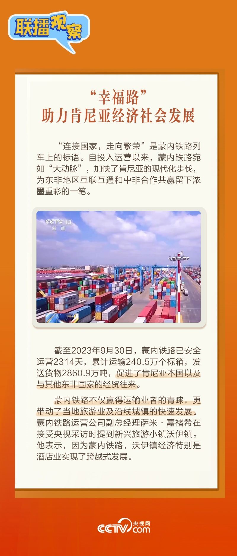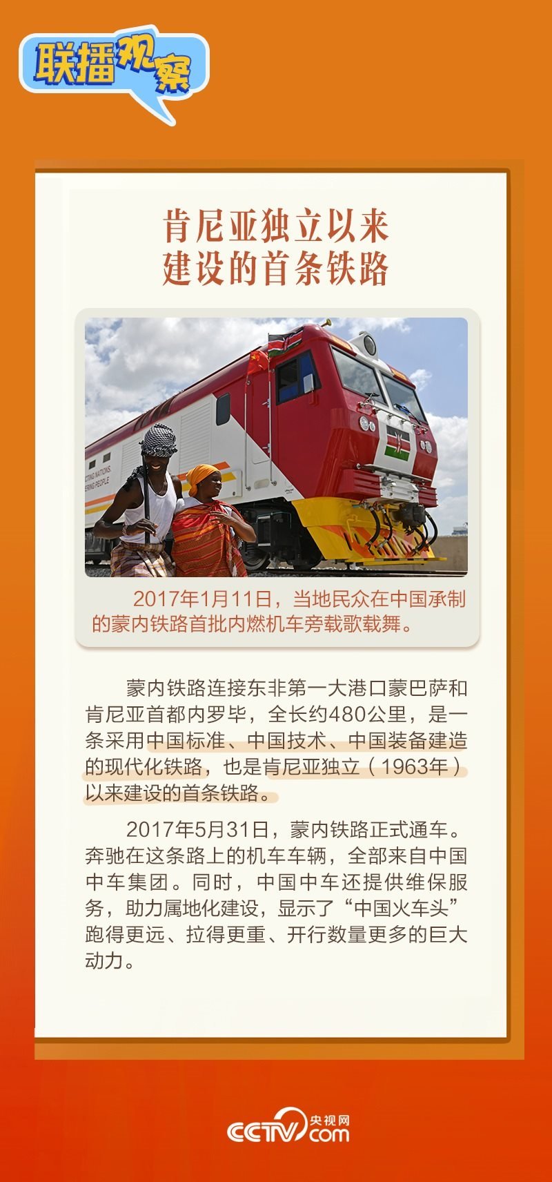 此前,習(xí)主席在外事活動中多次提及蒙內(nèi)鐵路,《新聞聯(lián)播》也持續(xù)關(guān)注這條路的建設(shè)及開通后的運營情況。這條“幸福路”有何特別之處,習(xí)主席為何頻頻提及?它的建成通車給當(dāng)?shù)貛砟男┳兓??《?lián)播觀察》邀您一同了解。