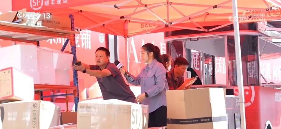記者在現(xiàn)場(chǎng)發(fā)現(xiàn),一些毛絨玩具等商品被零散地放在快遞點(diǎn),并沒有及時(shí)被打包。快遞員說他從早上7時(shí)30分就提前過來,但包材很快就用完了,這是他沒想到的。