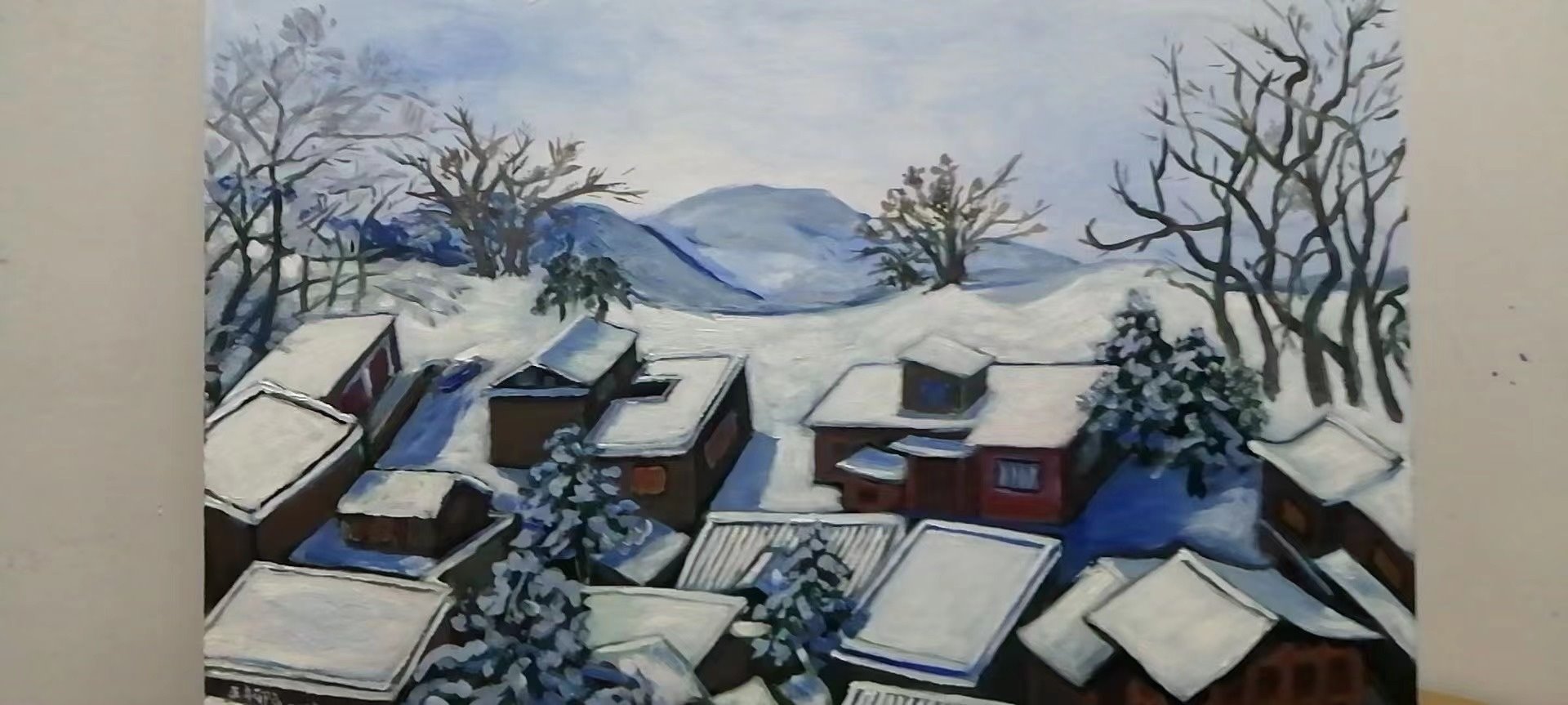 衛(wèi)生間一旁的儲物間里,擠滿了王柳云的畫作:河邊的野鴨,雷電亮起的剎那,還有富春山的冬和夏。40乘60厘米的畫布上,那些樹木,那些花草,香了滿世界。