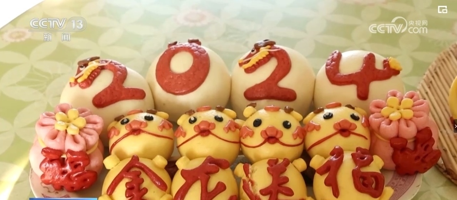 在黑龍江樺南縣,為了圖個熱鬧、沾個喜氣,誰家蒸花饃,鄉(xiāng)里鄉(xiāng)親都會前來幫忙。在村民張瑞雪家里,大家圍坐在桌前,小小面團通過“一印、二捏、三鑲”等技法,再起鍋開蒸,就變成了精美的龍年花饃。這些花饃形態(tài)各異,有的威武雄壯、有的憨態(tài)可掬,不僅外觀吸引人,更承載著美好的新年祝福。