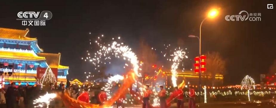 春節(jié)臨近,內蒙古烏蘭察布古城新春燈會也正式開燈。栩栩如生的巨型花燈構成璀璨燈海,彩燈與古色古香的建筑交相輝映,形成恢弘壯美、流光溢彩的美麗景象。現(xiàn)場打鐵花、舞火龍、煙花秀等民俗活動輪番上演,令游客流連忘返。