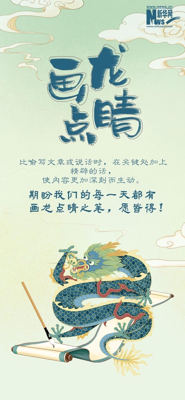 2024年是農(nóng)歷甲辰龍年?!褒垺痹谥腥A民族心目中有著重要地位,被視為吉祥、權(quán)威和神圣的象征。在歷史發(fā)展長(zhǎng)河中,“龍”逐步匯聚起豐富的文化內(nèi)涵與美好寓意,成為人們精神信仰和文化生活的重要組成部分。春節(jié)期間,《尋“龍”記》帶您領(lǐng)略博大精深的中華“龍”文化,本期推出一組寓意深遠(yuǎn)、意蘊(yùn)豐富的含有“龍”字的成語,為新的一年注入更多的美好祝愿。