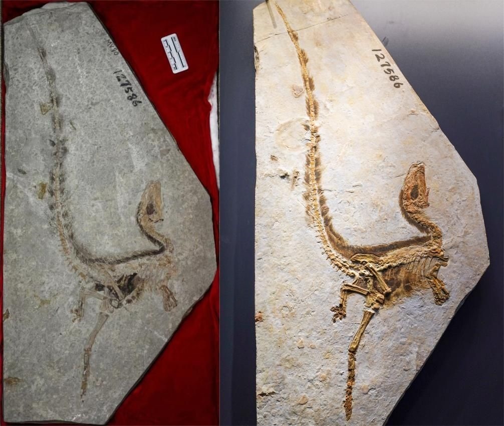 ·這只“明星恐龍”生活在距今1.25億年前,化石于1995年在我國(guó)遼寧被發(fā)現(xiàn)。中華龍鳥(niǎo)最令人震驚的是化石上保存完好的“羽毛”。這是人類第一次發(fā)現(xiàn)明確的帶羽毛的恐龍化石,最早的研究者們認(rèn)為這可能是一種長(zhǎng)相酷似恐龍的“鳥(niǎo)”,因此給它起名“原始中華龍鳥(niǎo)”。