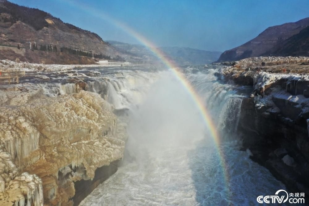 近日,受氣溫回暖影響,位于山西省吉縣和陜西省宜川縣交界處的黃河壺口瀑布冰消河開(kāi),再現(xiàn)奔騰咆哮的壯美景觀。