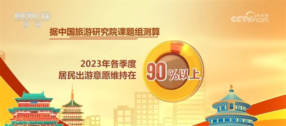 據(jù)中國(guó)旅游研究院課題組測(cè)算,2023年各季度居民出游意愿維持在90%以上。2023年全國(guó)游客滿意度綜合指數(shù)80.04,處于滿意水平,與2019年滿意度水平基本持平。