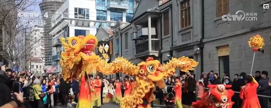 在上海的大街小巷,舞龍舞獅、光影秀等各類新春活動陸續(xù)登場,讓市民游客感受龍年的歡騰圖景。一大早,隨著鑼鼓聲激昂開場,一條金龍和兩頭活潑的醒獅在上海市茂名北路威武亮相。龍獅團成員們舞動一條長約30米的巨龍在街市上穿梭游走,吸引了不少市民游客駐足觀看。