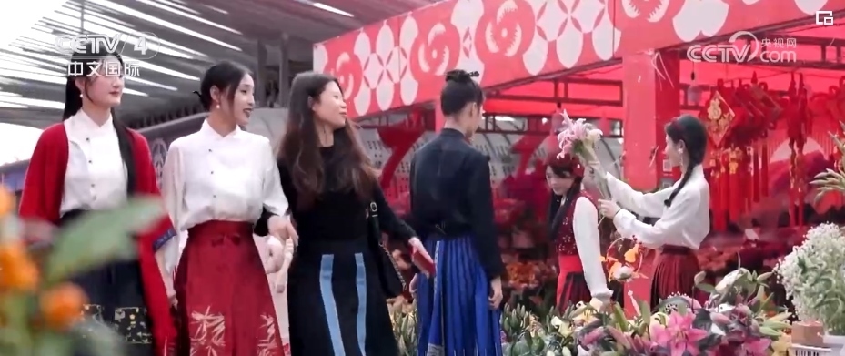 新春佳節(jié),添置一身新衣辭舊迎新,是很多人過年的儀式感。在廣東、福建等地街頭大大小小的“花市”上,馬面裙與五彩斑斕的鮮花相互映襯,成為龍年新春的一道亮麗風景。