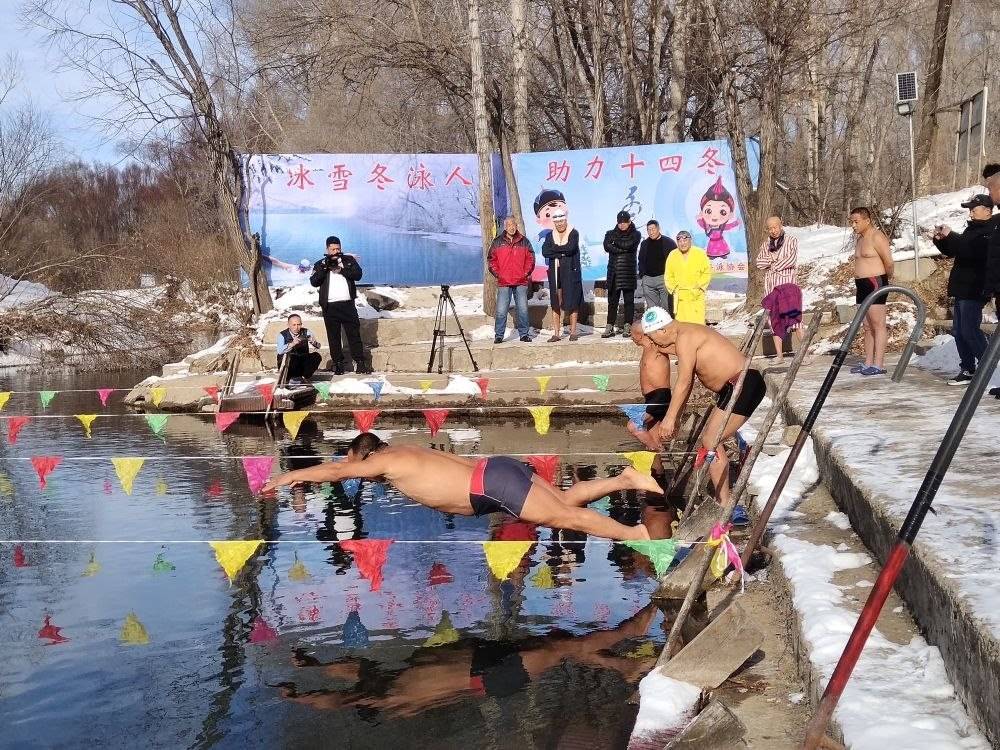 冬天的呼倫貝爾扎蘭屯市,街上行人裹著厚厚的羽絨服疾行而過,不愿在寒冷的室外多做停留。然而在郊外的雅魯河畔,一群僅著泳衣的冬泳愛好者卻不畏嚴寒,做著下水前的熱身活動。