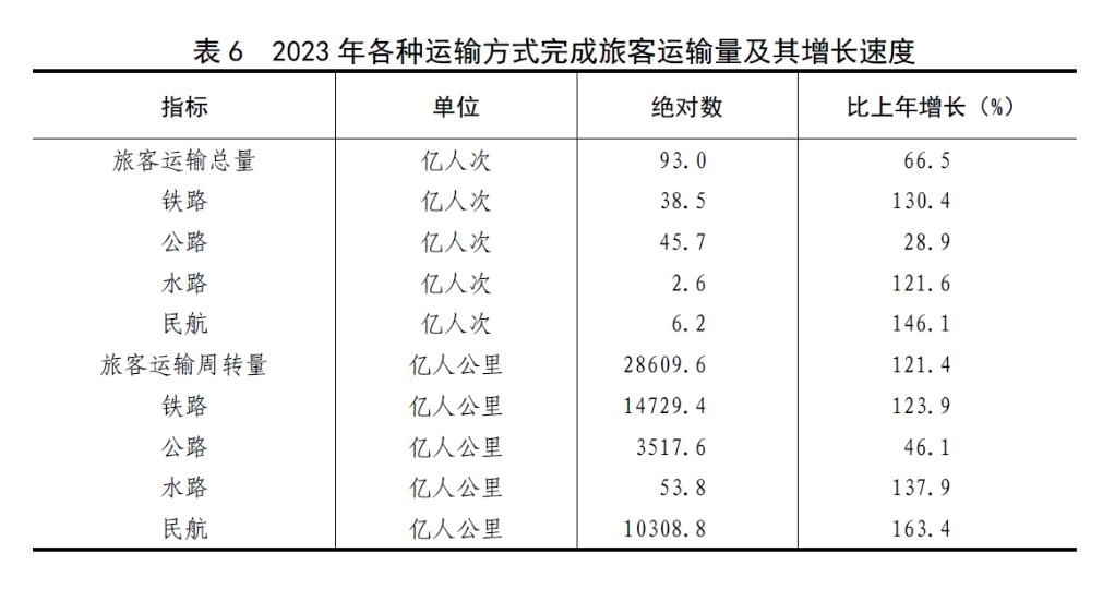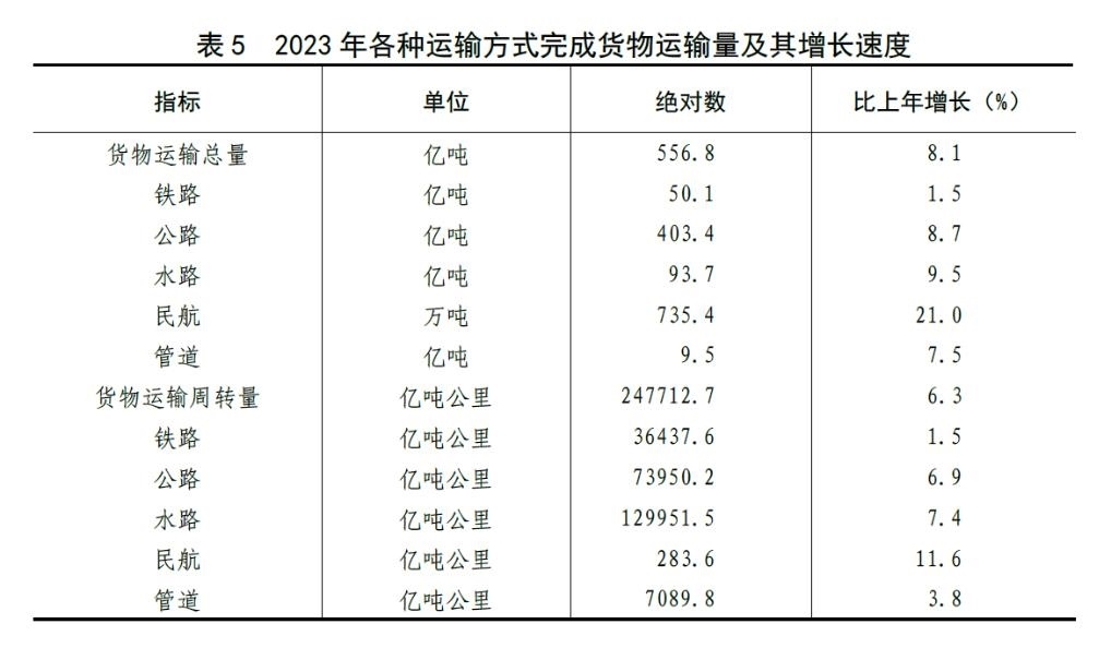 [28]貨物運輸總量及周轉(zhuǎn)量包括鐵路、公路、水路、民航和管道五種運輸方式完成量,2023年增速按可比口徑計算。