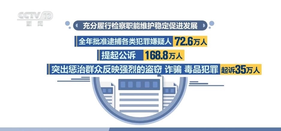 充分履行檢察職能維護(hù)穩(wěn)定促進(jìn)發(fā)展。全年批準(zhǔn)逮捕各類犯罪嫌疑人72.6萬人,提起公訴168.8萬人。突出懲治群眾反映強(qiáng)烈的盜竊、詐騙、毒品犯罪,起訴35萬人。