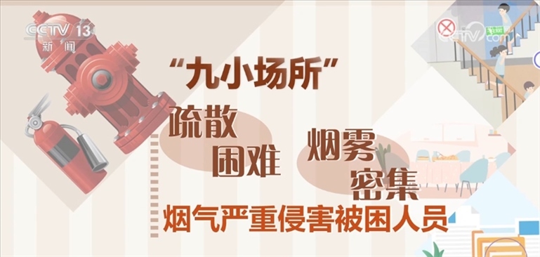 “九小場所”是指建筑面積在300平方米以下的小商場、額定就餐人數(shù)100人以下的小飯店、床位數(shù)50張以下的小旅館,以及小型的公共娛樂、休閑健身、醫(yī)療、教學、生產(chǎn)加工、易燃易爆危險品銷售儲存等場所。“九小場所”一旦出現(xiàn)火災,容易形成大面積燃燒。通常,“九小場所”疏散困難、煙霧密集,煙氣嚴重侵害被困人員。同時,水源缺乏、滅火救援難度大,極易造成人員傷亡。