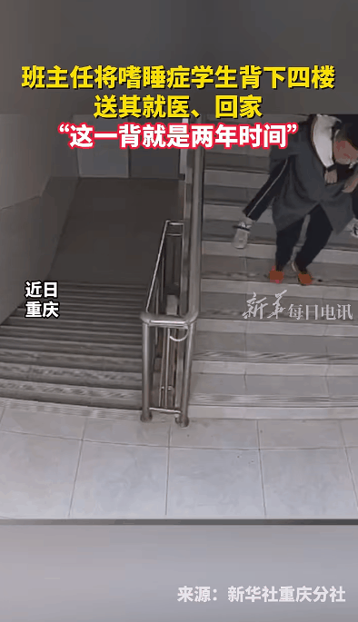 重慶墊江中學(xué)初二班里有位留守同學(xué)患有“嗜睡癥”,常常一睡不醒。老師們試過捏鼻子、用冷水巾擦臉、輕拍臉頰,多種方式都不奏效,最嚴(yán)重時(shí)一周會(huì)發(fā)作兩三次。每次他一睡不醒時(shí),班主任徐龍軍都會(huì)把他從四樓寢室背下來,送他回家或就醫(yī),這一背就是兩年。