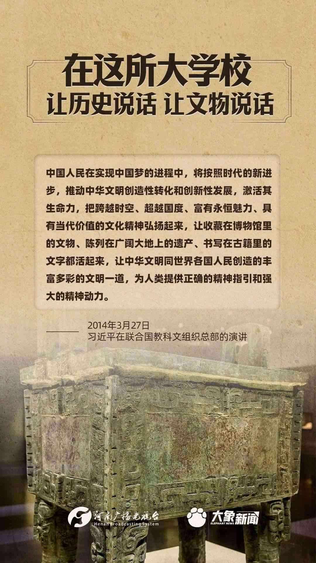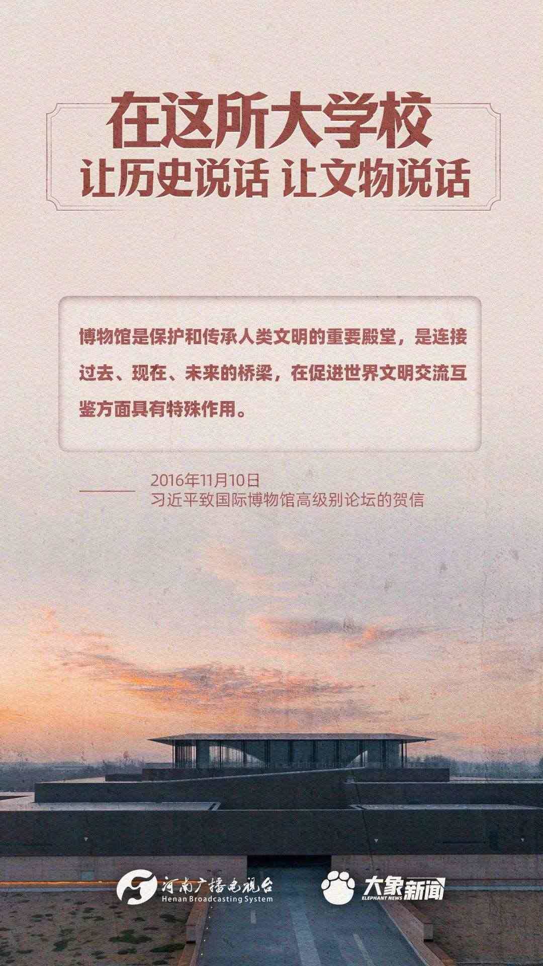 習(xí)近平總書(shū)記一直高度重視博物館工作,多次作出重要講話(huà),強(qiáng)調(diào)“一個(gè)博物院就是一所大學(xué)校”,指出“讓歷史說(shuō)話(huà),讓文物說(shuō)話(huà)”,要求“守護(hù)好、傳承好、展示好中華文明優(yōu)秀成果”等等,金句連連。大象新聞進(jìn)行了認(rèn)真梳理,邀您一起學(xué)習(xí)。