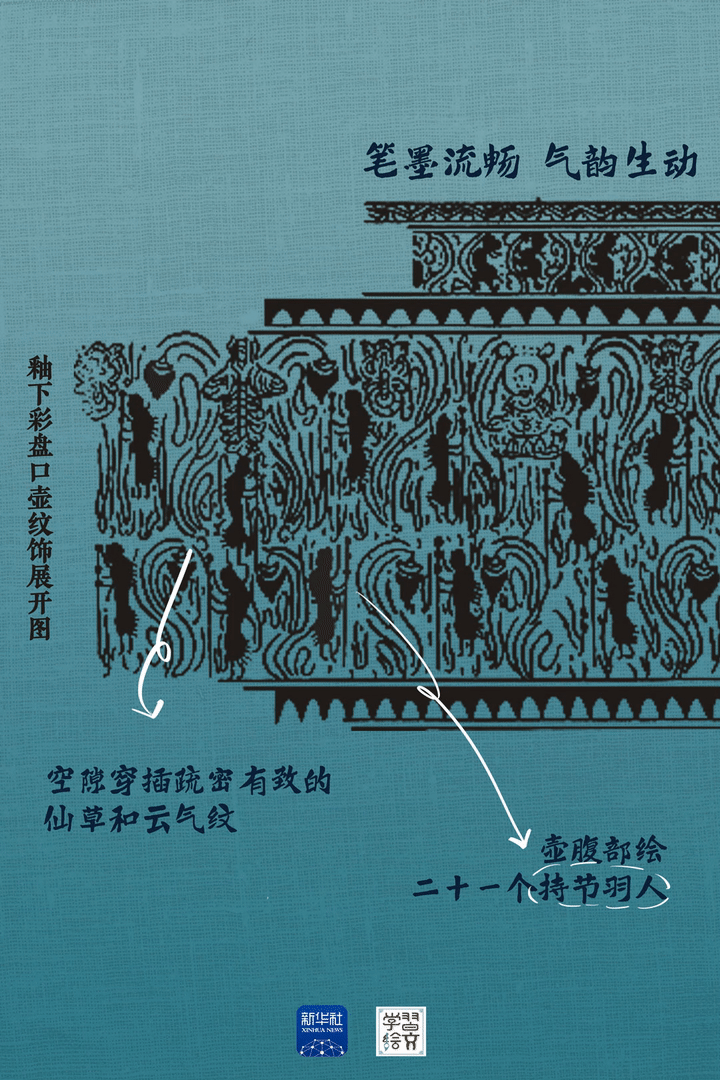 “這件藏于六朝博物館的青瓷釉下彩羽人紋盤(pán)口壺于1983年出土,精湛的釉下彩繪工藝,改變了人們對(duì)釉下彩工藝始于唐代的認(rèn)識(shí),把我國(guó)釉下彩繪工藝出現(xiàn)的時(shí)間提前了近五百年。”宋燕說(shuō)。