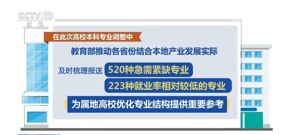 據(jù)介紹,在本次高校專業(yè)調(diào)整中,教育部推動各省份結(jié)合本地產(chǎn)業(yè)發(fā)展實際,及時梳理報送了520種急需緊缺專業(yè)和223種就業(yè)率相對較低的專業(yè),為屬地高校優(yōu)化專業(yè)結(jié)構(gòu)提供重要參考。