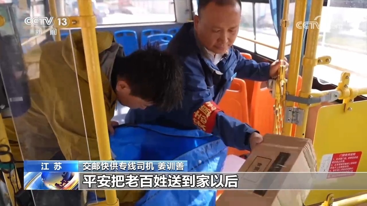 “交郵快供”專線司機姜訓善介紹,我們這一趟公交車就是“交郵快供”的一個特殊班次,帶(載)客再送快遞,平安地把老百姓送到家以后,這個快件也是一件不少地送到老百姓手中。