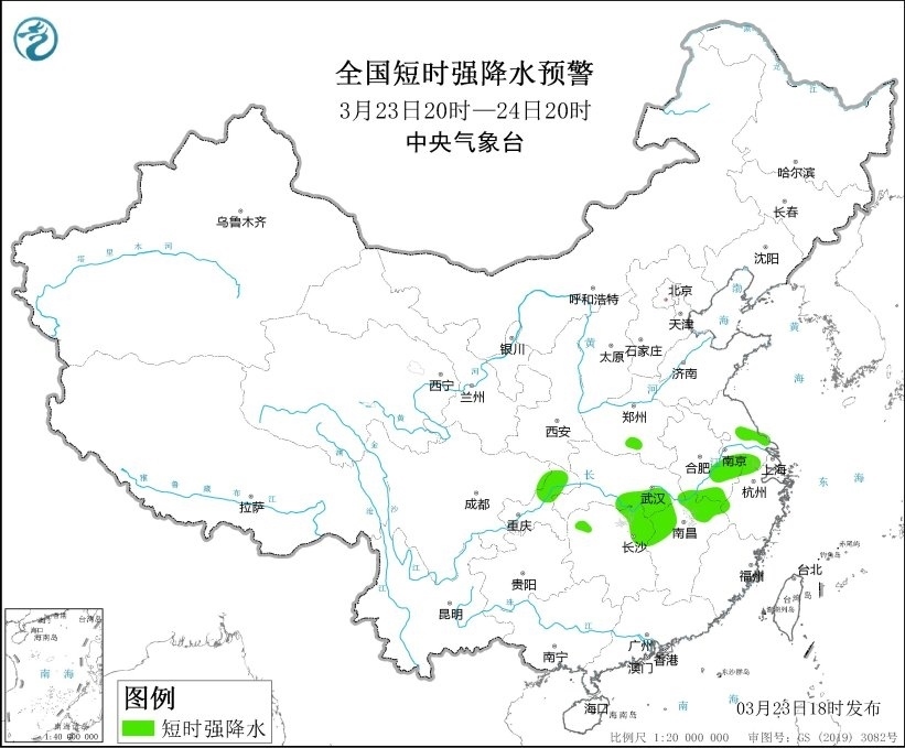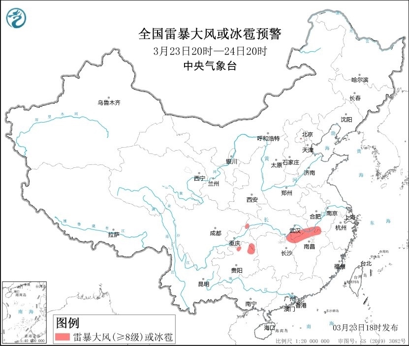 中央氣象臺3月23日18時繼續(xù)發(fā)布強對流天氣藍色預警