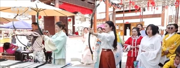 在四川遂寧市大英縣卓筒井鎮(zhèn),1.2萬(wàn)畝桃花競(jìng)相綻放,當(dāng)?shù)嘏e行桃花美食春游季活動(dòng),引來(lái)各地游客“打卡”。在管咸市街區(qū),體驗(yàn)蹴鞠、飛花令等宋代元素活動(dòng),品嘗長(zhǎng)桌宴。卓筒井鎮(zhèn)擁有首批國(guó)家級(jí)非物質(zhì)文化遺產(chǎn)“井鹽深鉆汲制技藝”,當(dāng)?shù)貙⒈彼蔚闹汽}文化與發(fā)展二十多年的甜桃產(chǎn)業(yè)“穿越”組合,打造出遂寧鄉(xiāng)村振興精品示范村“宋井桃源”,讓村民吃上了“旅游飯”。
