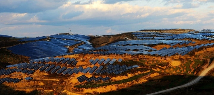 在昆明市石林縣北大村,由23萬塊光伏板組成的56個(gè)光伏發(fā)電方陣形成一道獨(dú)特景觀。由國(guó)家電投云南國(guó)際電力投資有限公司建設(shè)的這個(gè)光伏電站,年發(fā)綠色電能達(dá)7800萬度。