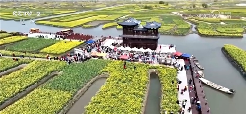 “垛田”是里下河地區(qū)獨(dú)有的農(nóng)業(yè)景觀。每塊“垛田”或方或圓,面積大的兩三畝,小的只幾分幾厘,今年因?yàn)樘鞖獾脑?,花開晚了五天左右,從現(xiàn)在到4月中下旬是理想的賞花期,預(yù)計(jì)會(huì)迎來超過150萬名游客。