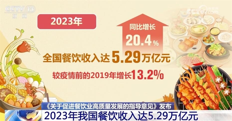 2023年我國(guó)餐飲收入達(dá)5.29萬(wàn)億元,同比增長(zhǎng)20.4%。那么,國(guó)家為什么在此時(shí)出臺(tái)促進(jìn)餐飲業(yè)高質(zhì)量發(fā)展的指導(dǎo)意見(jiàn)?餐飲業(yè)如何實(shí)現(xiàn)高質(zhì)量發(fā)展?目前面臨哪些問(wèn)題?來(lái)看專(zhuān)家的解讀。?