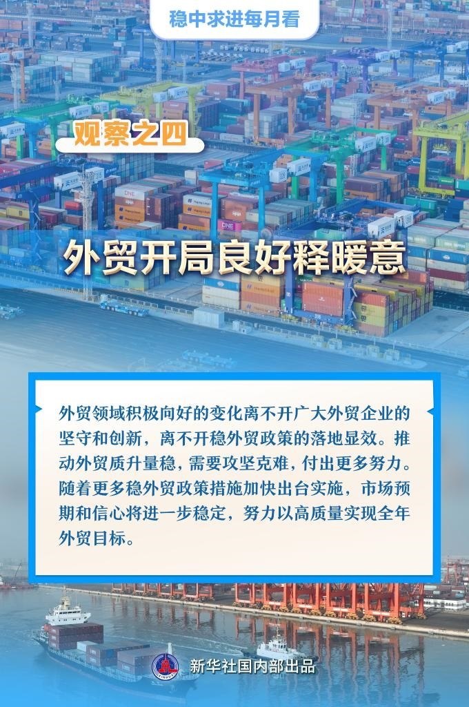 【記者觀察】外貿(mào)領(lǐng)域積極向好的變化離不開廣大外貿(mào)企業(yè)的堅守和創(chuàng)新,離不開穩(wěn)外貿(mào)政策的落地顯效。推動外貿(mào)質(zhì)升量穩(wěn),需要攻堅克難,付出更多努力。隨著更多穩(wěn)外貿(mào)政策措施加快出臺實施,市場預(yù)期和信心將進一步穩(wěn)定,努力以高質(zhì)量實現(xiàn)全年外貿(mào)目標。