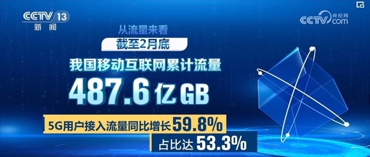 從流量來看,截至2月底,我國移動互聯(lián)網(wǎng)累計流量達487.6億GB,其中,5G用戶接入流量同比增長59.8%,占比達53.3%??梢钥闯?,5G已成為了流量使用增長的主動力。