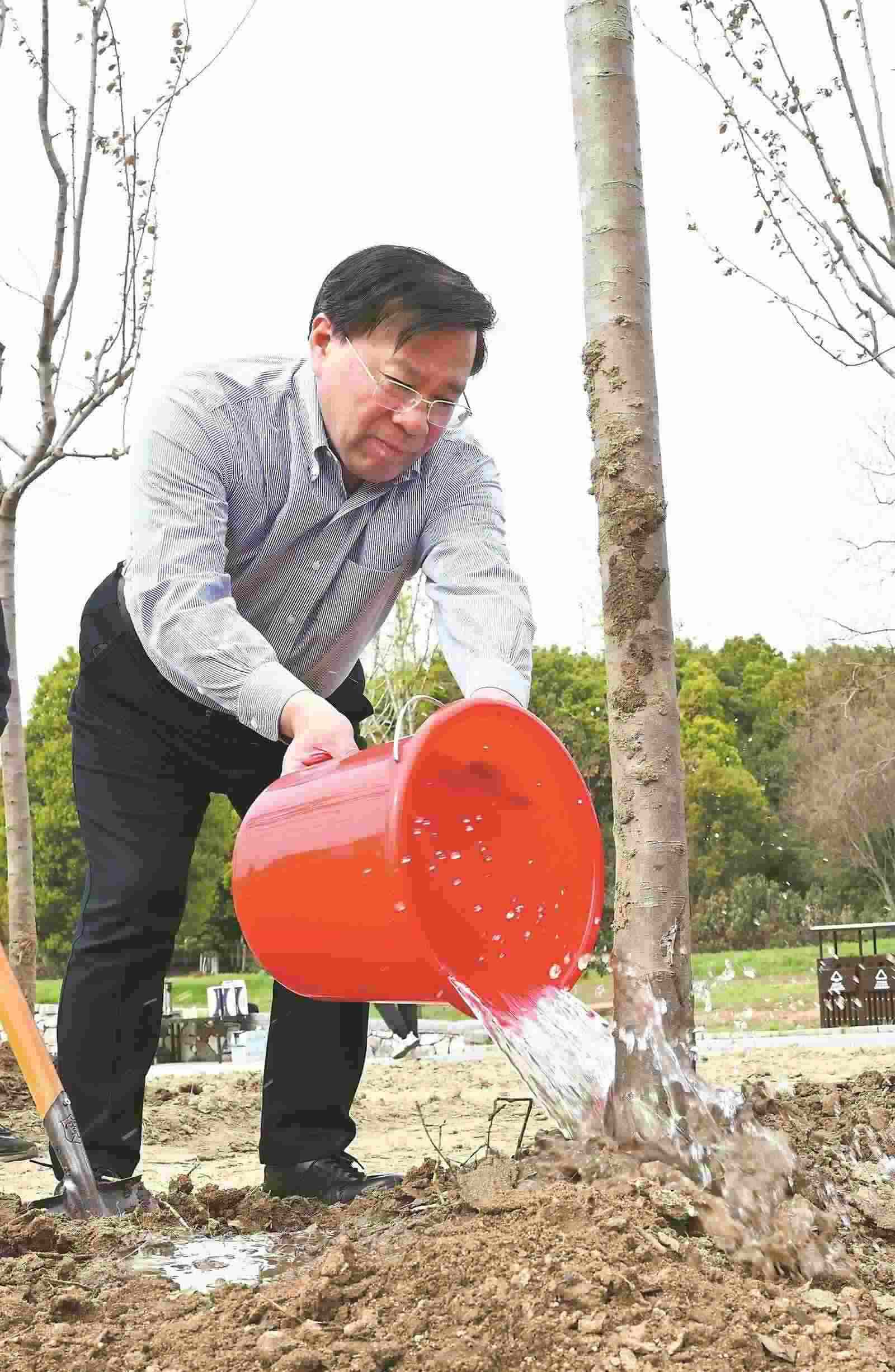 巢湖沿岸草木萌發(fā)、水清岸綠。下午3時左右,韓俊、王清憲、虞愛華等安徽省領(lǐng)導來到肥東縣六家畈紅石咀公園義務植樹點。在植樹現(xiàn)場,省領(lǐng)導詳細了解綠美江淮行動有關(guān)情況和全省造林綠化工作。韓俊指出,綠色發(fā)展是高質(zhì)量發(fā)展的底色,新質(zhì)生產(chǎn)力本身就是綠色生產(chǎn)力。各級各部門要深入學習貫徹習近平生態(tài)文明思想和習近平總書記關(guān)于安徽工作的重要講話重要指示精神,堅持生態(tài)優(yōu)先、綠色發(fā)展,扎實開展綠美江淮行動,持續(xù)深化林長制改革,深入實施重要生態(tài)系統(tǒng)保護和修復重大工程,統(tǒng)籌推進人工造林、封山育林、退化林修復、松材線蟲病防控等工作,大力發(fā)展林下經(jīng)濟和林業(yè)產(chǎn)業(yè),加快推進“以竹代塑”,培育壯大生態(tài)旅游、森林康養(yǎng)等新興業(yè)態(tài),做到生態(tài)保護和生態(tài)旅游相得益彰,積極推動發(fā)展方式綠色低碳轉(zhuǎn)型,努力將生態(tài)高顏值轉(zhuǎn)化為經(jīng)濟高價值,加快打造經(jīng)濟社會發(fā)展全面綠色轉(zhuǎn)型區(qū)。