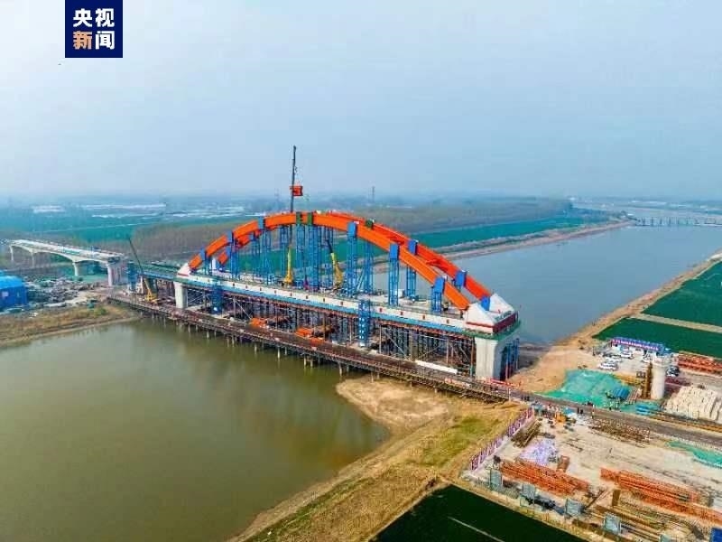 濟(jì)濱高鐵跨徒駭河系桿拱順利合龍